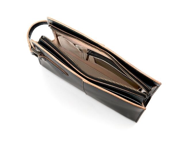 革の表面をきれいに磨いたガラス仕上げ加工の商品。